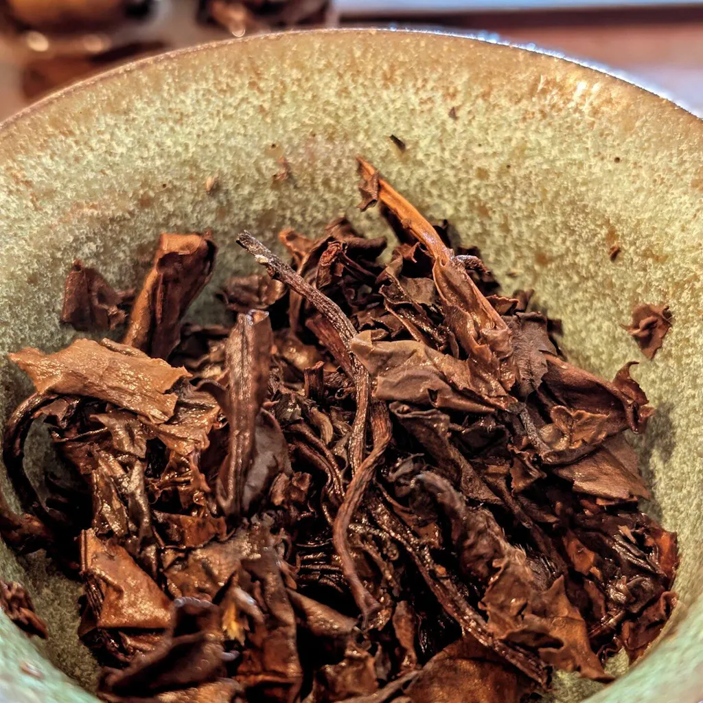 The wilderness gives this tea a fuller, richer body, while time smooths the rough corners into a gentle, honeyed red date roundness. It doesn't offer a blast of heat, but a steady warmth that spreads from the throat to the chest. After a long day, curling up in your own cozy tea corner with a cup of aged Shou Mei, what more could you ask for?